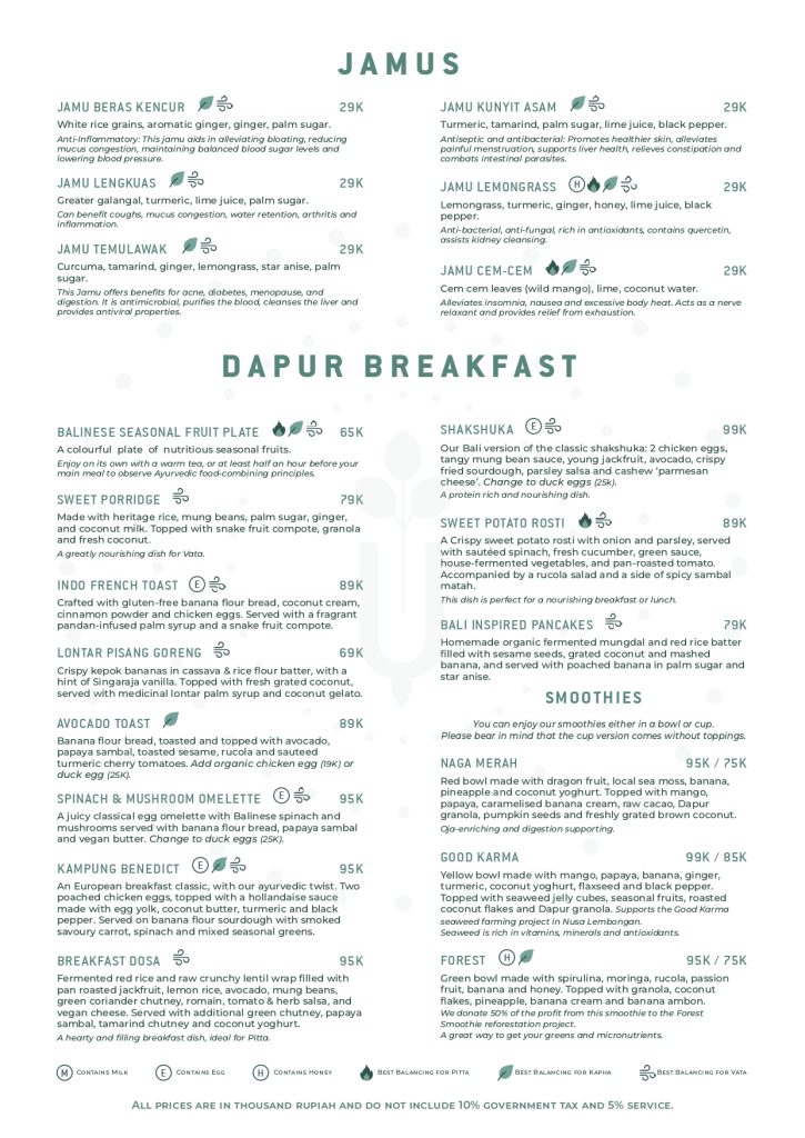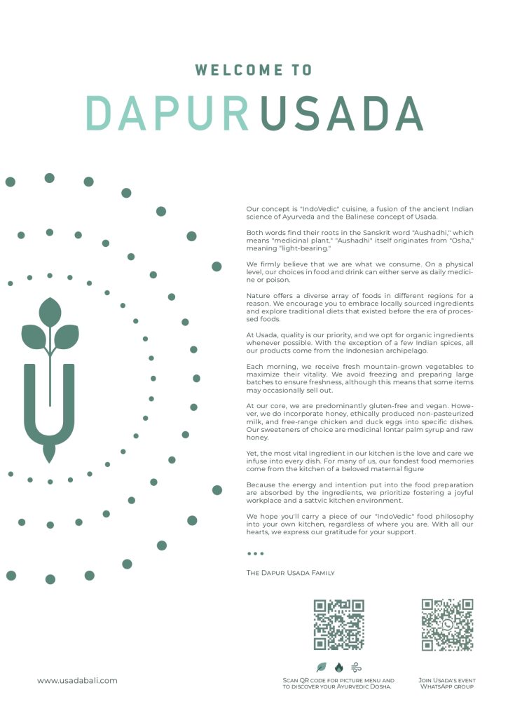 ‘Dapur’ in the Indonesian language means ‘kitchen’, and at Dapur Usada, we source the best of Indonesia’s diverse ingredients and combine them in unique and innovative ways, while respecting the principles of Ayurveda - “the science of life”. This is the Indo-vedic philosophy: eating as a holistic experience that brings you creative and healthy plant-based dishes, while respecting regional wisdom and a knowledge of nutrition for wellness and healing.