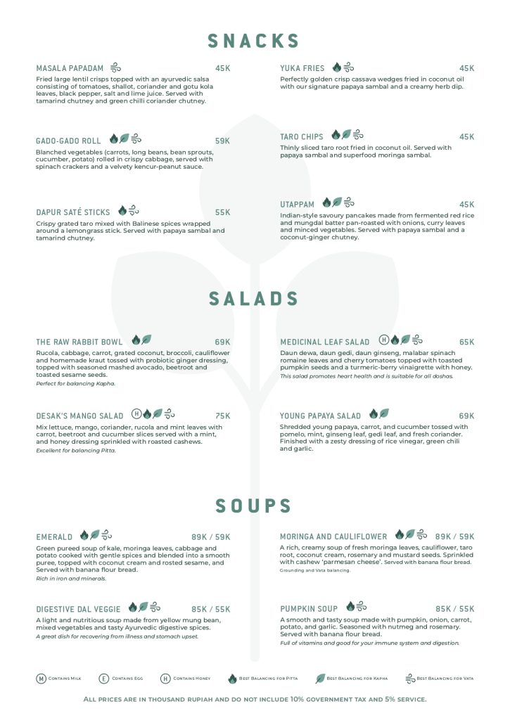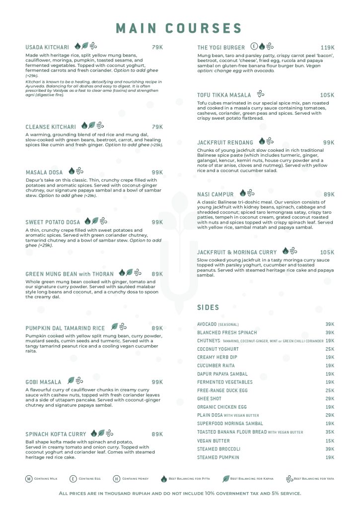 Dapur Usada is the first restaurant of its kind, and we pride ourselves on how we honour the spices and flavours of Indonesian food, across the archipelago, as well as the tastes and aromas of Indian culinary tradition. In both cultures, food is a sacred offering to the body, and a vehicle for connection with others. Ayurveda also sees food as medicine – we strive to offer you innovative food that nourishes body and soul, delights your taste-buds and provides shared enjoyment.